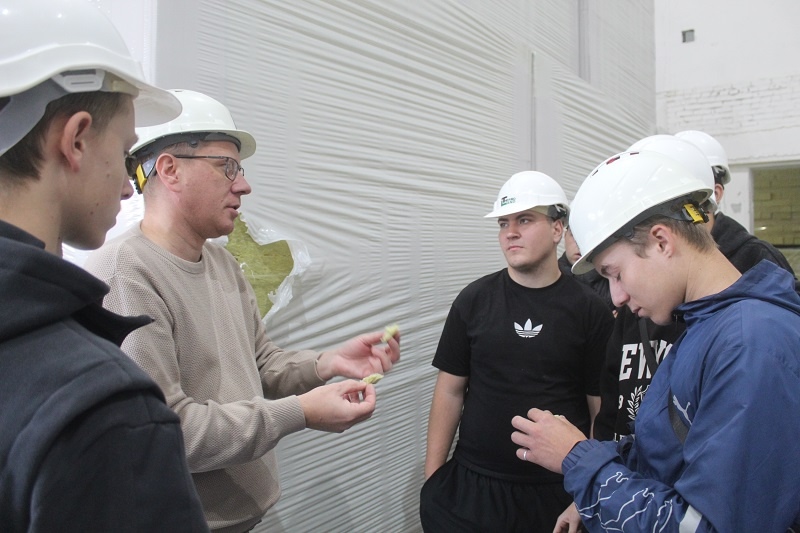 По цехам завода «Термолэнд» ребят провёл Александр Геннадьевич Баймлер – главный технолог производства Термолэнд. Он подробно и со знанием дела ответил на вопросы студентов о социальных гарантиях, заработной плате и карьерных возможностях, ведь Александр Геннадьевич сам 16 лет назад пришел на завод рядовым сотрудником, и, обучившись всем технологическим тонкостям, прошёл путь до руководящей должности.